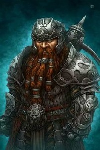 | Jurgen Kroum, fils de Gorvak Kroum ex-dirigeant du village de Stirnuf Barn, fils de Jürgen Kroüm (notez les trémas ;) ), héros reconnu pour ses faits d'armes auxquelles il aurait succombé en tentant de décrocher le soleil, a pour mission de redorer le nom familial par des faits d'armes dignes de son grand-père...d'où son nom. Dès son plus jeune âge, son père a voulu en faire un guerrier brutal mais juste, capable de jouer du tambour de guerre et de forger "à sa façon". Mais cela n'était pas le tempérament de Jurgen. Celui-ci avait plutôt tendance à réfléchir avant d'agir et estimait que la "justice" n'était pas toujours valable pour arriver à ses fins. D'ailleurs, c'est à cause de la "justice" que le village de Stirnuf Barn avait été repris sous couvert de magouilles politiques qui avaient retirées les clés du village à son père. Bref, son art à lui c'était plutôt la réflexion afin d'agir au mieux pour une efficacité maximum. Arrivé à l'âge adulte, et bien qu'il soit en désaccord avec son père, il remercia celui-ci de lui avoir inculqué une éducation "virile" qui lui permis de se rendre compte qu'il avait désormais toutes les clés en main pour s'en sortir dans la vie. Il quitta alors le foyer familial avec ses acquis "physiques" et "intellectuels" dans le but d'honorer le nom de son grand-père et d'espérer arriver à reprendre le contrôle de Stirnuf Barn un jour. En route, il se rappela les histoires de son grand-père : les combats contre les Phénix pour récupérer leur "Flamme", le labyrinthe qu'il avait cartographié qui menait aux géants de pierre, protecteurs du "Bulbe du Printemps", le combat contre une chimère juste après s'être "chamaillé" avec un camarade etc jusqu'au final : la tentative de faire s'écraser le soleil afin de détruire les Ombres...au final il en déduit que grand-père n'était peut être pas si "bon" que ça, mais que cela était peut être nécessaire pour une vie meilleure, et que tout compte fait, peut être qu'il ne se battait pas pour la lumière, mais au contraire pour l'obscurité... C'est alors que Jurgen rencontra les membres de l'Union Obscure, l'aventure commençait! ******************************************************************************** Presque aussi larges qu'ils sont hauts, les fiers aventuriers nains à la barbe fournie et aux sourcils broussailleux sont en général des combattants féroces et tenaces, mus par un grand sens de l'honneur et du clan - ainsi, disent les mauvaises langues, que par une atavique soif de l'or. Ils portent le plus souvent de lourdes armures de plate forgées par leur soin, et gardent leurs haches de guerres aiguisées avec un soin jaloux. Qu'ils viennent des profondes mines de leur cité d'Octobian ou qu'ils aient franchi les Mers jusqu'aux rivages de l'Île, ce sont des artisans plus que compétents, et bien qu'ils soient dur en affaire, ils se révèlent souvent des marchands honnêtes. Courageux, les nains affectionnent la bagarre, surtout après quelques bières, dont ils font une consommation importante. | |