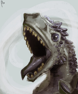 Surgi des tourbillons tournoyant amenés depuis les lointains éthers glacés, le Dragon des Vents se présente aux regards terrifiés des passants sous la forme d’un immense lézard à la couleur grisâtre. Démuni d’ailes, les plus savants de Nacridan ne le considèrent pas comme un véritable dragon mais plutôt comme un élémentaire tirant son essence et sa force des puissances du Corps d’Hiolis. Seuls les plus puissants mages savent le dompter au moyen de flûtiaux et maîtriser ainsi sa fougue légendaire. Les autres affronteront en vain son corps élancé et mobile comme l’air, aussi insaisissable que le vent et aussi terrible qu’un cyclone lorsqu’il se met en tête de renforcer sa substance d’une matière plus tangible. Planant au-dessus de ses proies, porté par les masses d’air déchaînées qui le soutiennent, il décrit de larges cercles avec une rapidité surnaturelle avant de fondre sur ses victimes comme la tempête s’abat sur le pauvre peuple. Sa nature éthérée laisse alors place à de terribles mâchoires qui se saisissent de quiconque l’aura contrarié dans ses desseins étranges, et qui l’amèneront vers un septième ciel aérien et fatal. [i]« Avis de tempête sur Ouest[/i] - [i]Izandar, je répète, avis de tempête sur Ouest[/i] - [i]Izandar. Ne sortez pas de chez vous, ne prenez pas la mer, un Dragon des Vents est signalé sur la zone ! Tiens, il y a comme un courant d’air dans la pièce, quelqu’un aurait laissé une fenêtre ouverte ? »[/i] Les Bulletins de la Météorologie Nacridane